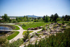 Możemy tu zanurzyć się w feerię barw i upajać zapachami, jakie serwuje nam ponad 30 kolekcji i tysiące roślin – lecznicze, chronione, rodzime, wodne, łąki, murawy… Wśród kwiatów uwijają się zaś stali lokatorzy Ogrodu, do których należą między innymi dzikie pszczoły.