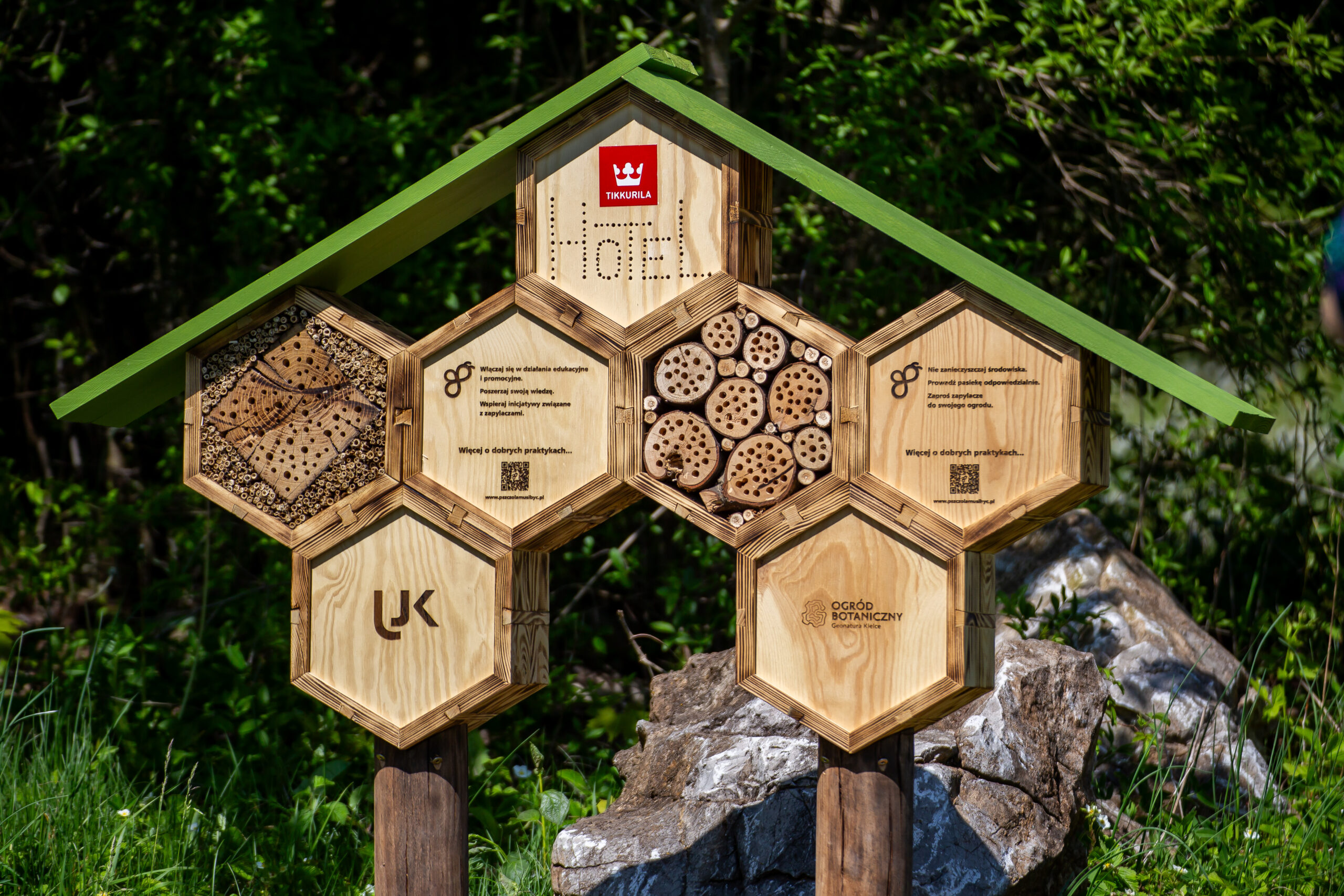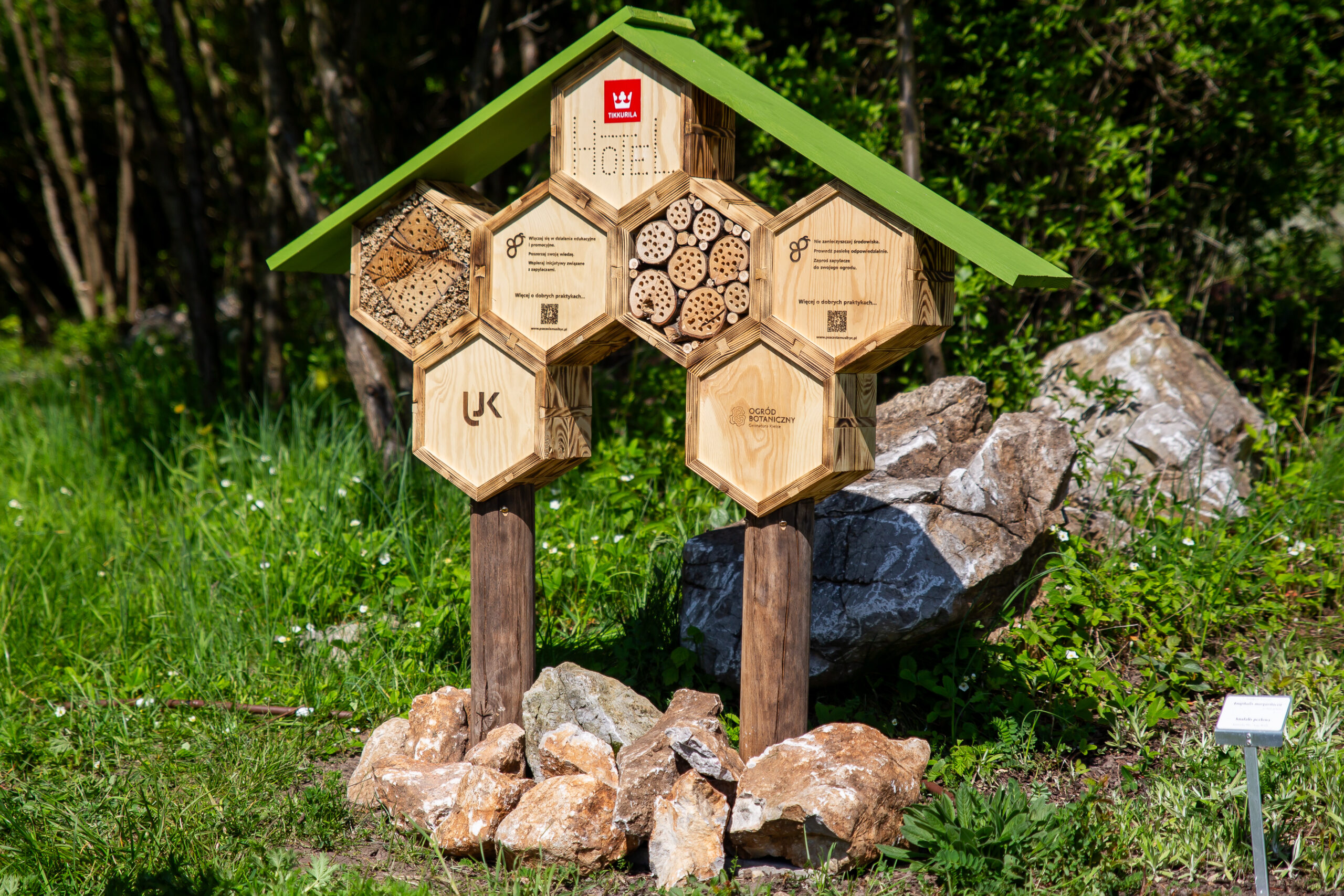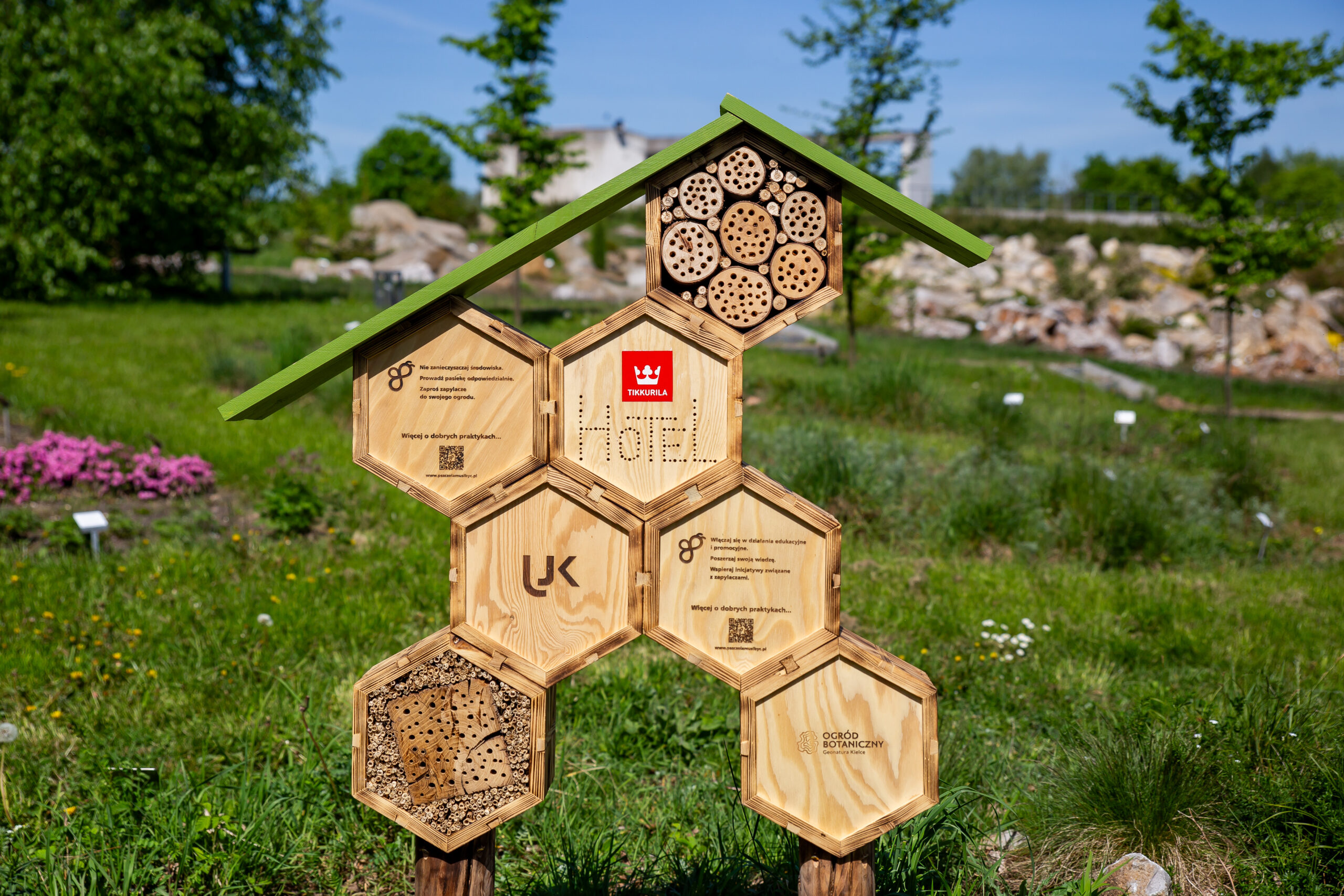 Aby dzikim pszczołom (ale także innym błonkówkom) ułatwić gniazdowanie, w Ogrodzie zainstalowano dwa hotele dla zapylaczy, których sponsorem jest marka Tikkurila. Ufundowała ona również dwie tablice informacyjne, z których odwiedzający mogą dowiedzieć się o znaczeniu, roli, a także zwyczajach zapylaczy.